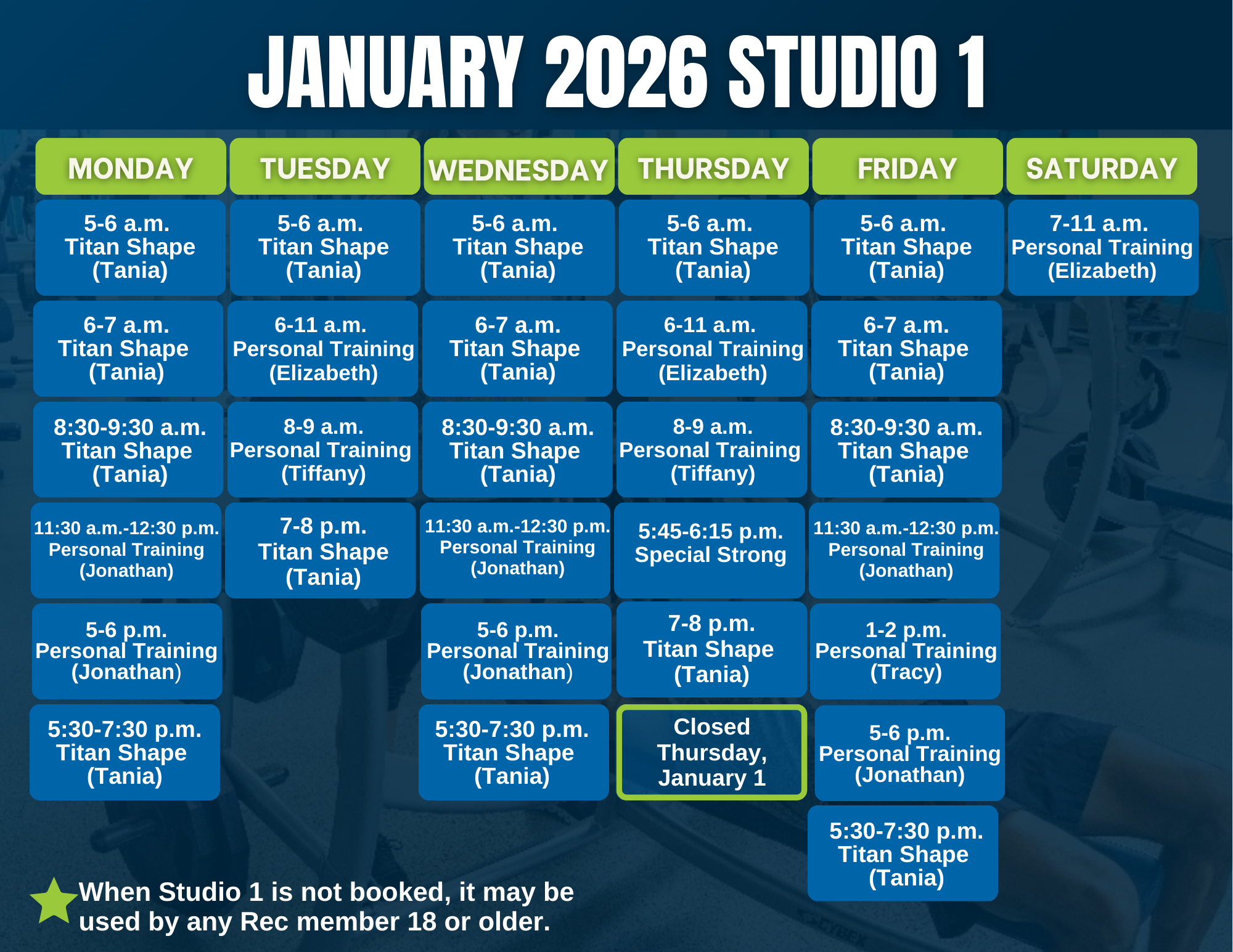 For more information and questions on group exercise classes, please contact our Fitness & Wellness Supervisor, Delaney Williams, at 972-731-1467 or del.williams@littleelm.org.